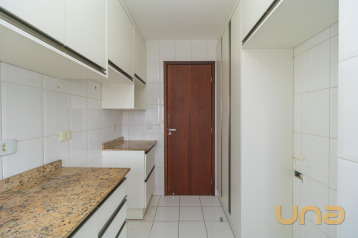 Cozinha com armário, pia com tampo granito, 01 fogão elétrico, 01 geladeira, 01 microondas, depurador, lavadora de roupas lava e seca;