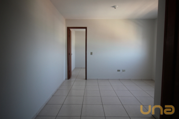 - 01 Quarto principal mobiliado com cama de casal, guarda-roupas e criado-mudo.