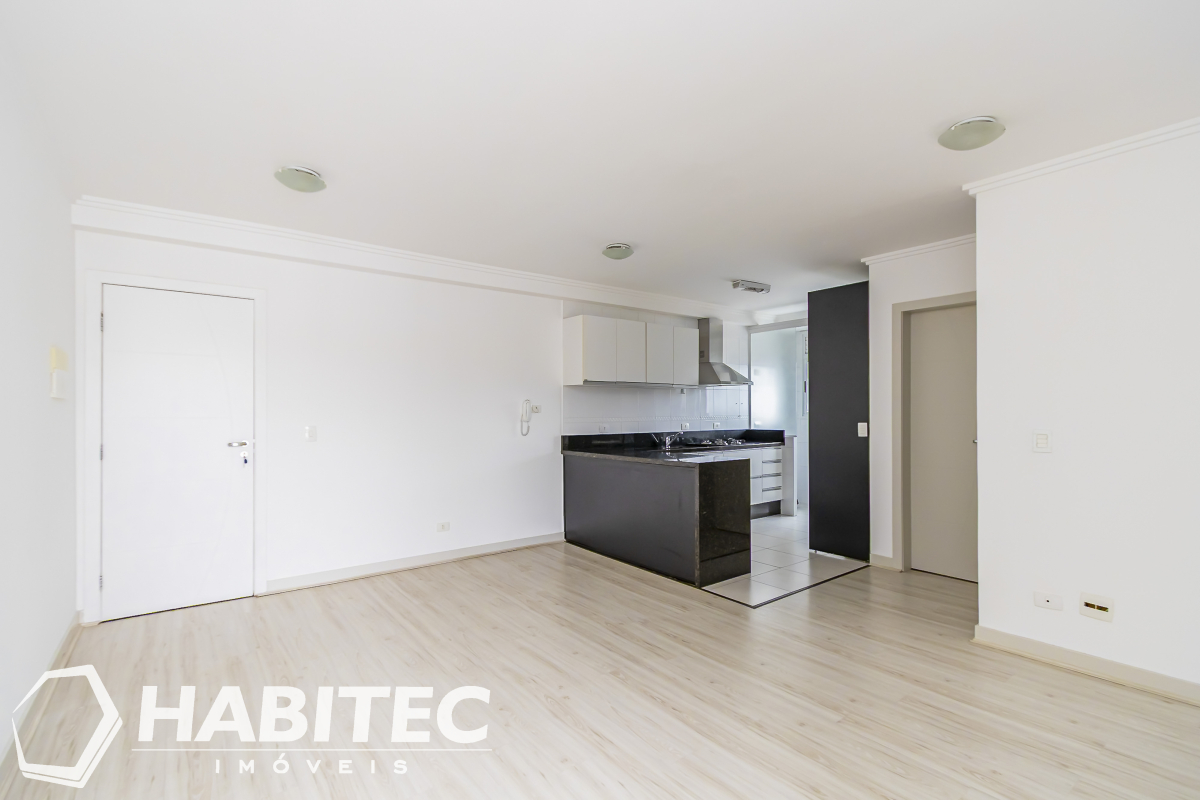 Sala ampla com sacada, 02 dormitórios sendo 1 suíte, cozinha americana com armários, cooktop, coifa, área de serviço, piso laminado.