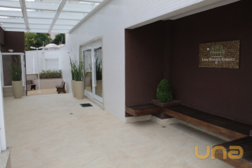 O condomínio oferece portaria 24 horas e área de lazer completa.