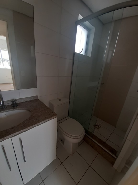 * BWc social e suíte com box de vidro, armário com tampo em granito e espelho;