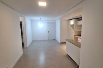 Dividido em sala para dois ambientes (estar e jantar), amplo terraço com churrasqueira, cozinha equipada com armários planejados, lavabo, e banheiro social.