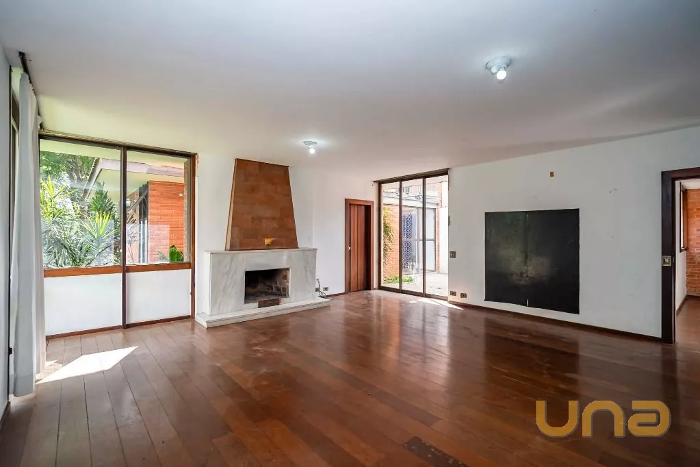 Piso térreo: 2 amplas salas, sendo uma com lareira, 3 quartos, incluindo: 1 suíte, 1 dormitório com banheiro tipo demi-suíte, cozinha espaçosa com armários, Jardim de inverno com churrasqueira, área de serviço com dependência de empregada, banheiro social, acesso à varanda por portas dos quartos, armários embutidos.