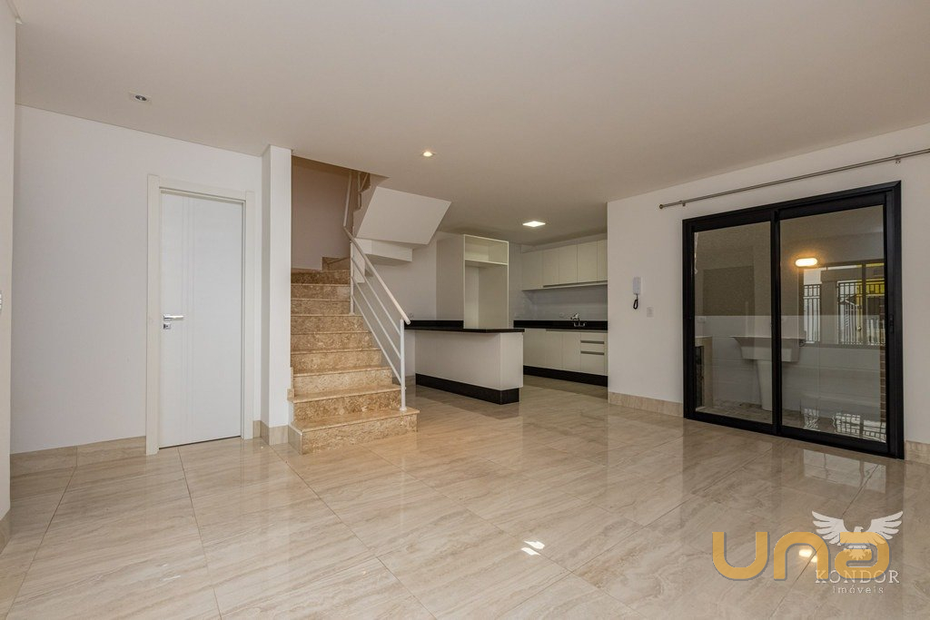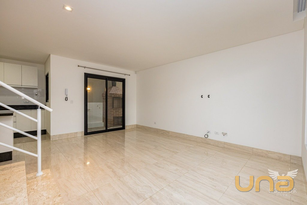 Sobrado de frente para rua com 115,00m², com cozinha com armários e tampo em granito, lavabo, churrasqueira a carvão, garagem coberta, três quartos sendo uma suíte, banheiro social, duas vagas de garagem.