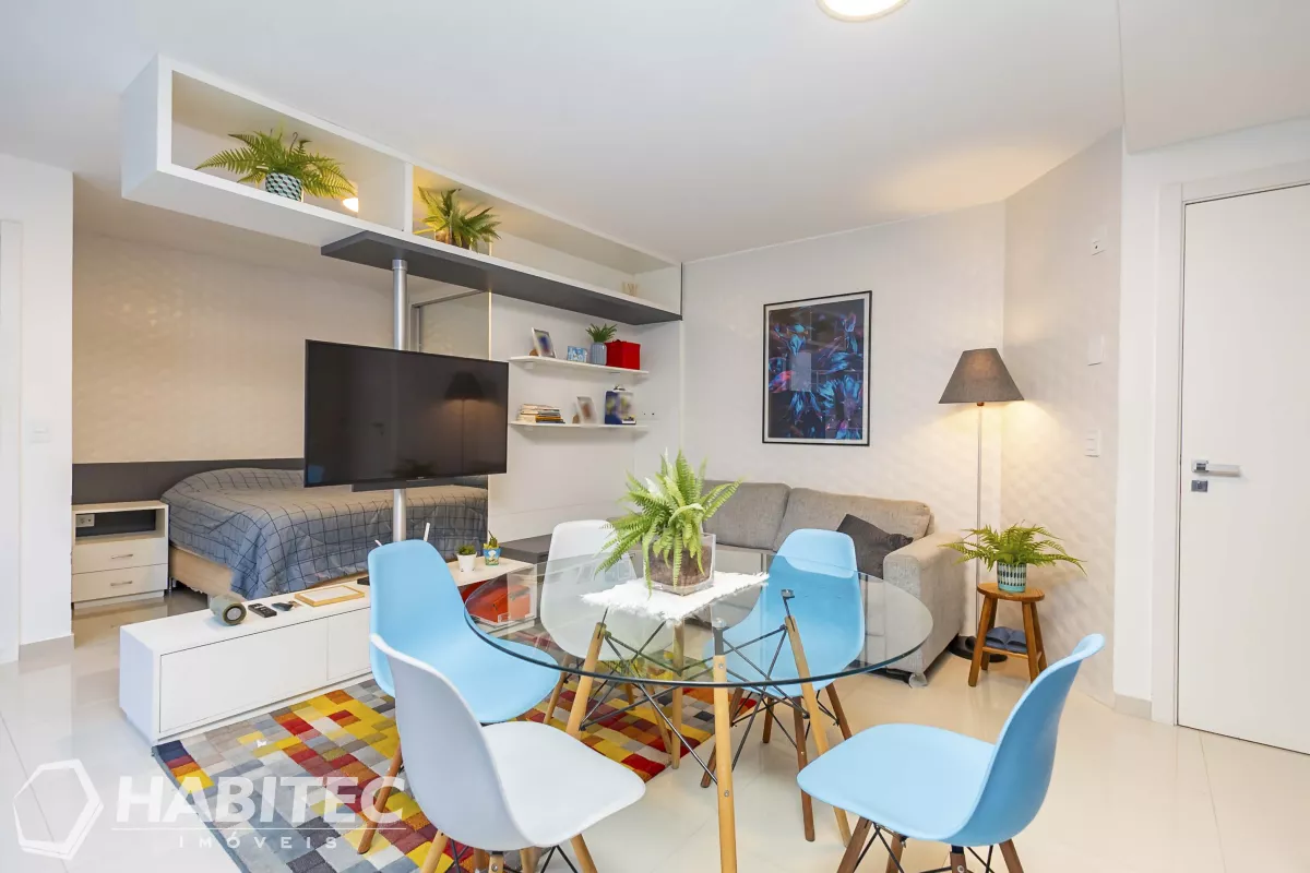 Excelente studio está localizado no Edifício Vila Real, em uma das regiões mais valorizadas da cidade. A poucos passos de mercados, farmácias e com fácil acesso ao transporte público, o imóvel oferece a conveniência ideal para o dia a dia.