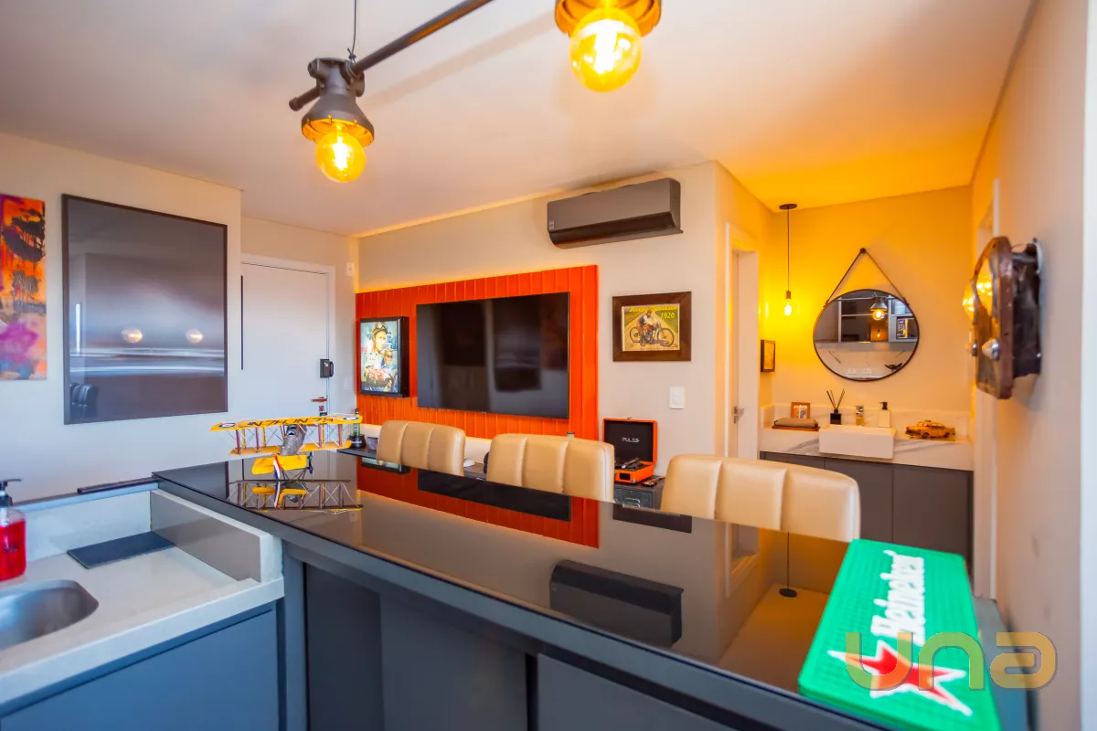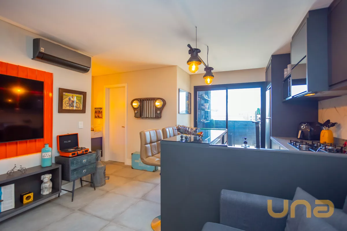 Estas palavras definem este apê de 41,50m² que surpreende na riqueza de detalhes e na decoração de muito bom gosto! A planta original foi alterada ainda na construção para ampliar o ambiente social de sala e cozinha, além disso, o imóvel está todinho mobiliado, pronto para a mudança e conta com armários sob medida, uma ampla sacada com churrasqueira á carvão com pia de apoio, 01 dormitório e 01 banheiro social.
