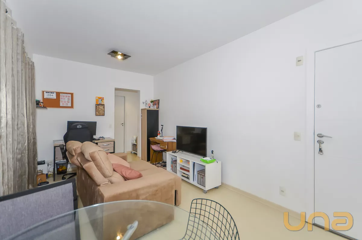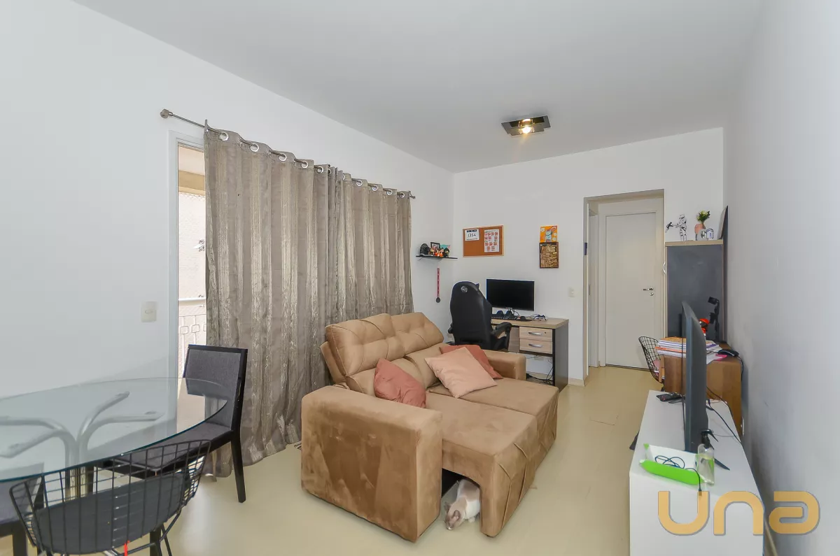 1 dormitório com armários, 1 bwc social, sala para 2 ambientes, cozinha toda equipada com armários embutidos, sacada ampla.