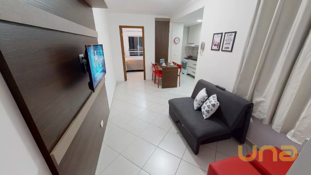 Apartamento mobiliado em localização privilegiada, com uma vaga, no Centro de Curitiba próximo a Reitoria da UFPR, Hospital de Clínicas, contendo sala com cozinha e área de serviço conjugadas e uma suíte com sacada.