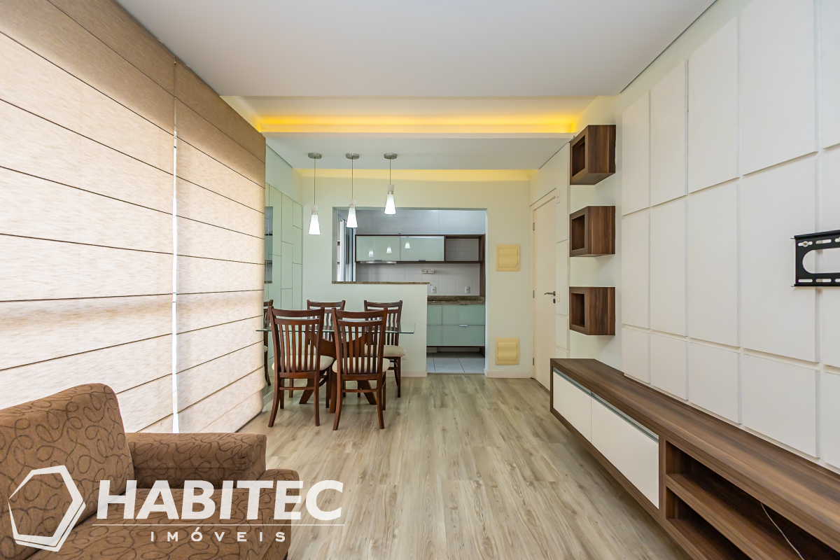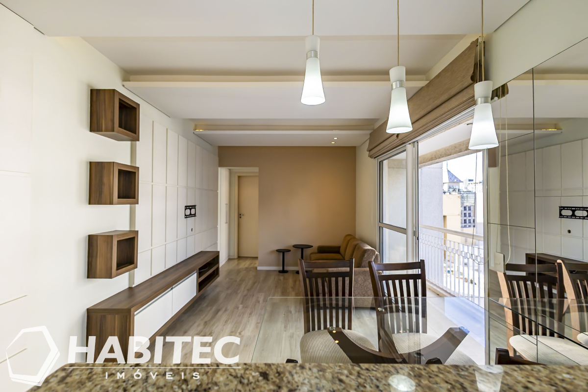 Apartamento totalmente decorado com 1 quarto, suíte, cozinha estilo americana com armários planejados Florence, forno elétrico e geladeira, área de serviço. Ficam todos os móveis planejados, luminárias e cortinas.