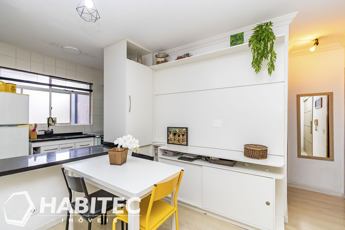Apartamento aconchegante, 1 quadra do shopping curitiba, com uma excelente planta, cozinha gourmet, estilo americana, área de serviço separada da cozinha, ampla sala para 2 ambientes, banheiro social. Imperdível!