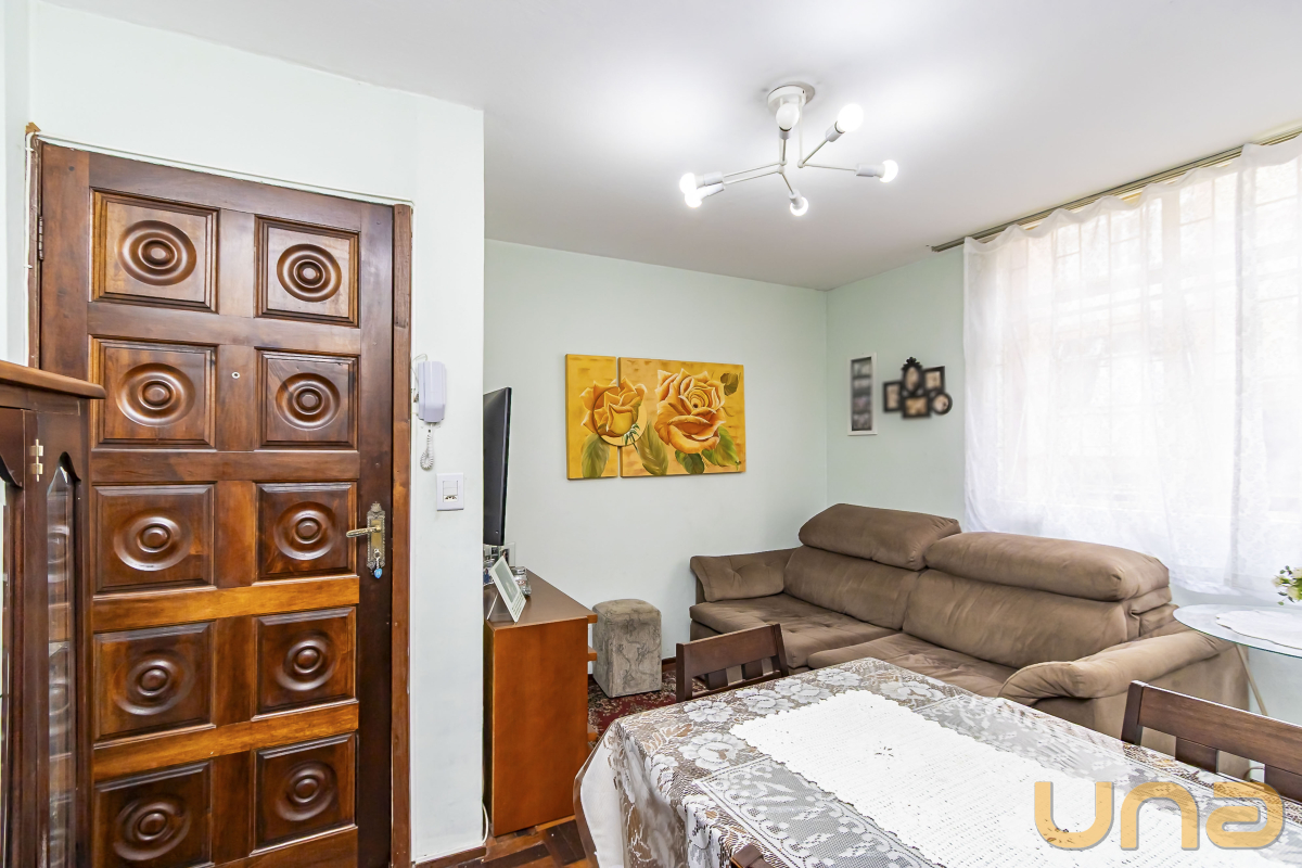Apartamento térreo (com um lance pequeno de escada) com 02 quartos, originalmente eram 03 quartos, podendo ser revertido, sala para 02 ambientes, cozinha com área de serviço, 01 banheiro. Piso taco, aquecimento elétrico.