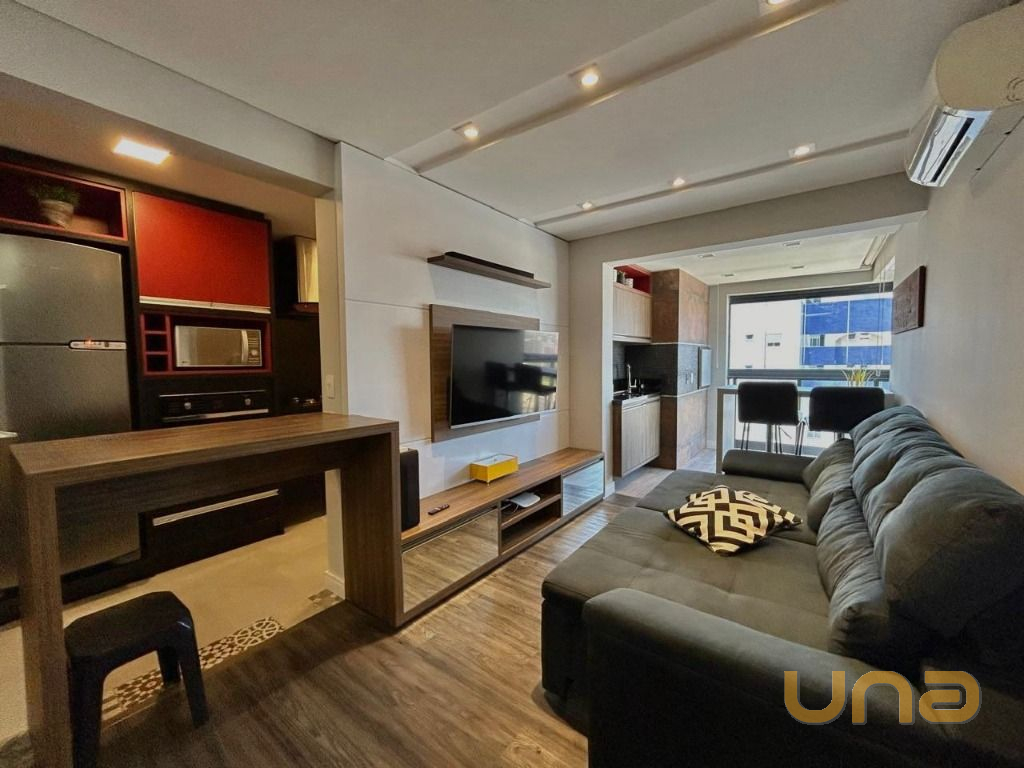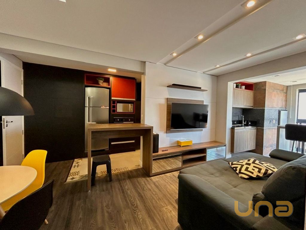 - Sala ampla, com sacada estendida e churrasqueira, totalmente mobiliada