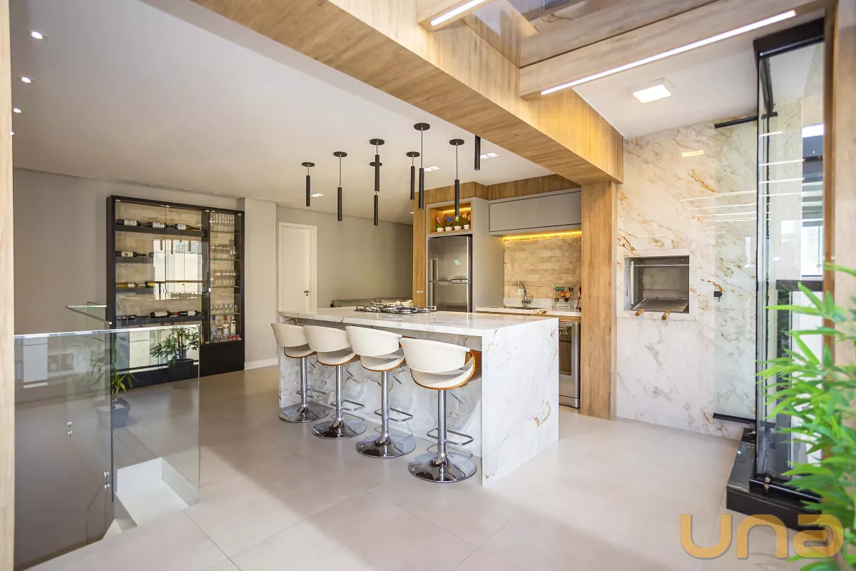 A área gourmet é um dos grandes destaques, equipada com cozinha com churrasqueira a carvão, ilha com cooktop a gás e espaço de refeição para até 4 pessoas. Conta ainda com uma sala de estar com rack e cristaleira, além de uma sala de jantar com lareira. O andar também oferece um banheiro completo, área de lavanderia separada com máquina lava e seca, armários e ótimo espaço de armazenamento. O fechamento em Reiki permite integrar os ambientes internos com a vista externa, tornando o espaço ainda mais aconchegante e versátil.
