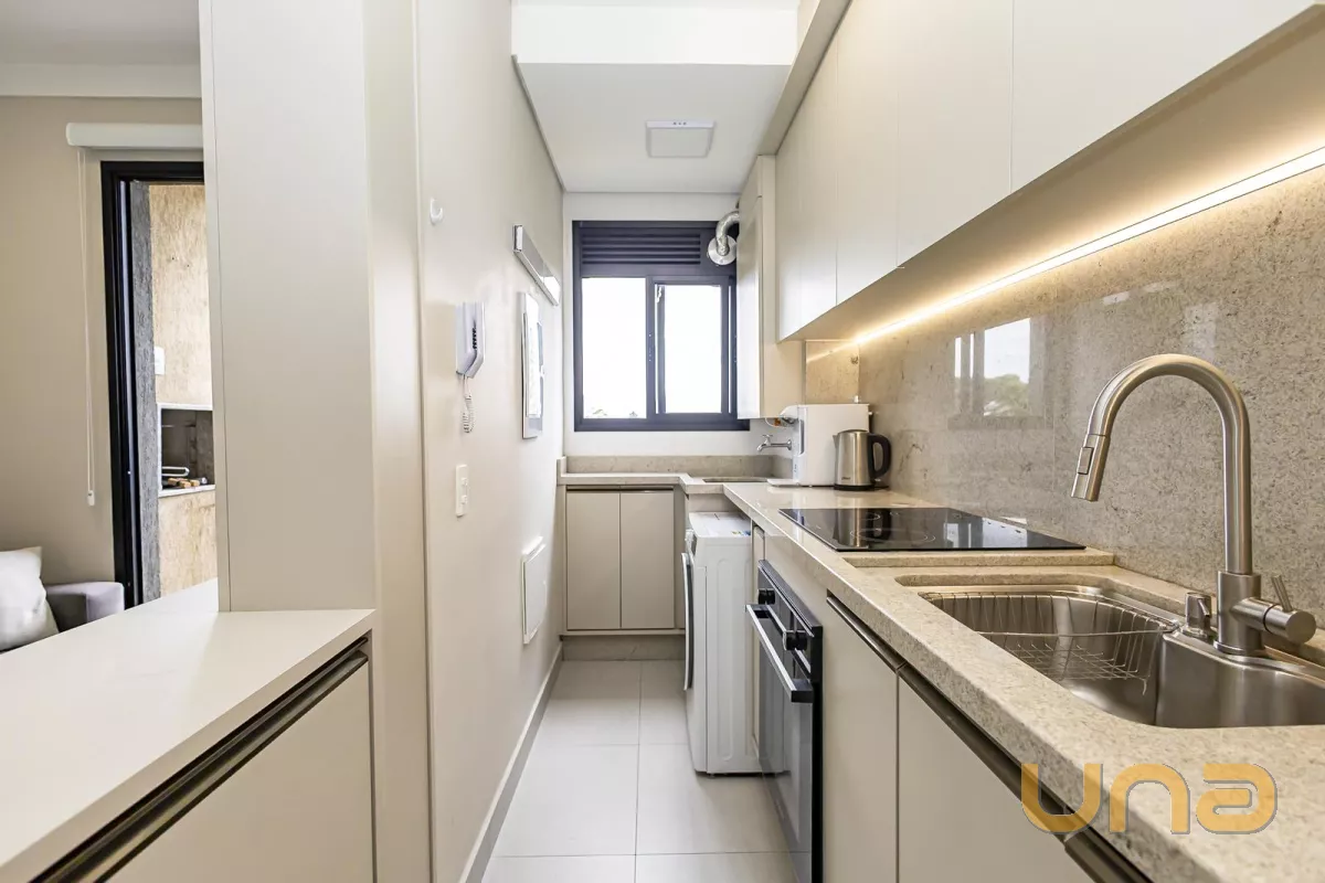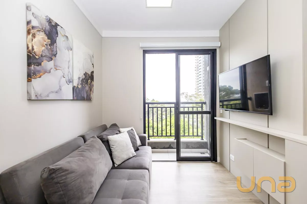 Detalhes: Apartamento à venda no residencial Sou Ecoville, semimobiliado, com planta de 45m2 privativos, 2 quartos, sala com painel de TV, cozinha com armários planejados, cooktop e forno embutido, quartos com armários planejados, banheiro com ventilação natural, sacada com churrasqueira, último andar e com linda vista para a mata, 01 vaga de garagem coberta. Preparação para ar condicionado, aquecimento a gás. Prédio novo entregue final de 2024. Condomínio com portaria 24 horas, salão de festas, espaço gourmet, espaço fitness, brinquedoteca, sala de jogos, espaço pet, rooftop e muito mais. Agende sua visita agora mesmo e se encante com seu novo lar.