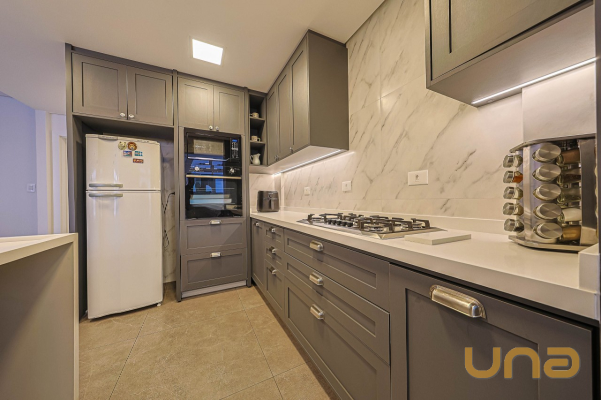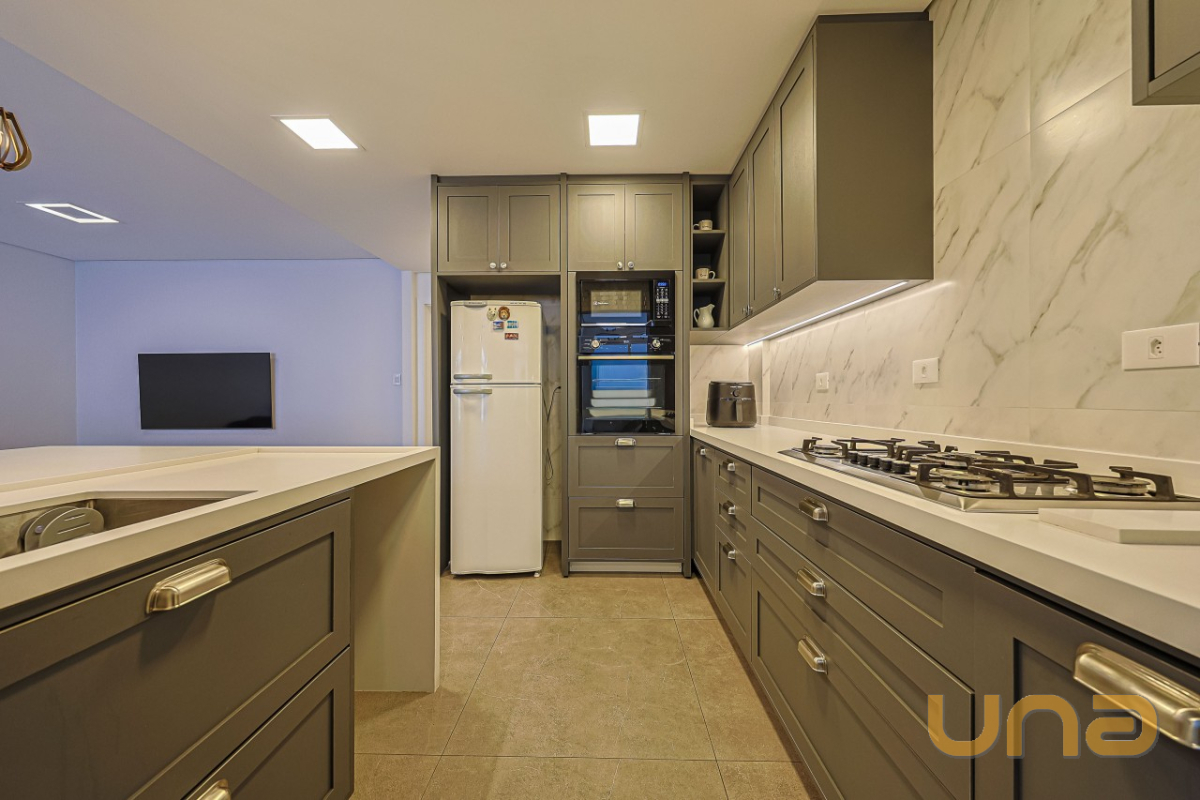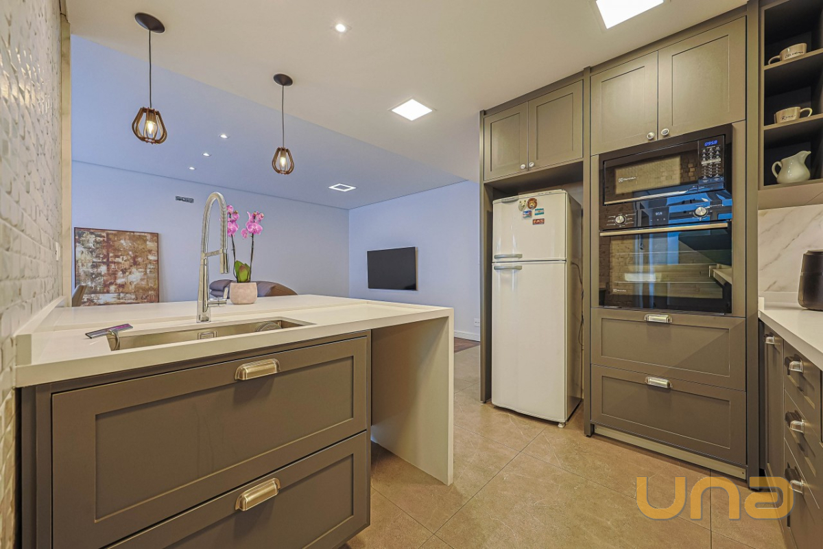 - Cozinha americana integrada a uma sala espaçosa e luminosa, perfeita para conviver, receber amigos ou relaxar.