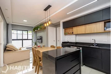 Piso superior conta com uma sala íntima, lavabo e escritório. Além de espaço externo com cobertura de vidro com churrasqueira, pia e espaço de convivência. Tudo isso com uma ótima incidência de sol e uma bela vista do Ecoville!