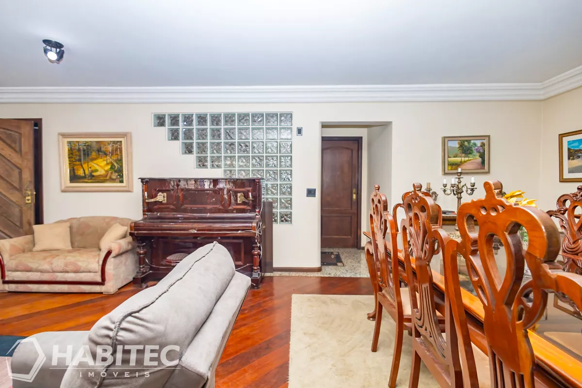 Piso inferior: sala de estar, sala de jantar, lavabo, adega, copa, cozinha completa com armários, despensa e lavanderia.