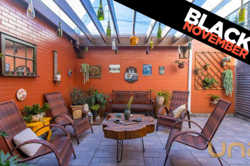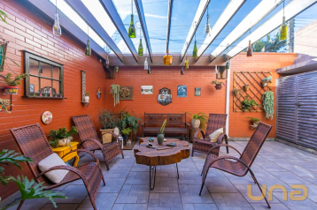 Nos fundos um ótimo espaço fechado com churrasqueira, banheiro e depósito. Garagem coberta para vários carros, e lindo espaço com jardim e gramado na frente.