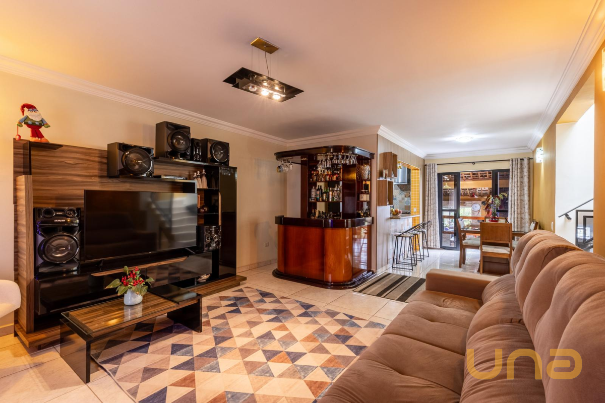 No primeiro piso, o imóvel oferece uma ampla sala para dois ambientes, lavabo, cozinha com armários planejados, espaço com churrasqueira e um belo quintal gramado e com árvores frutíferas, perfeito para quem gosta de curtir a natureza e ambientes ao ar livre. A garagem é um grande diferencial, com 3 vagas cobertas e mais 6 vagas descobertas.