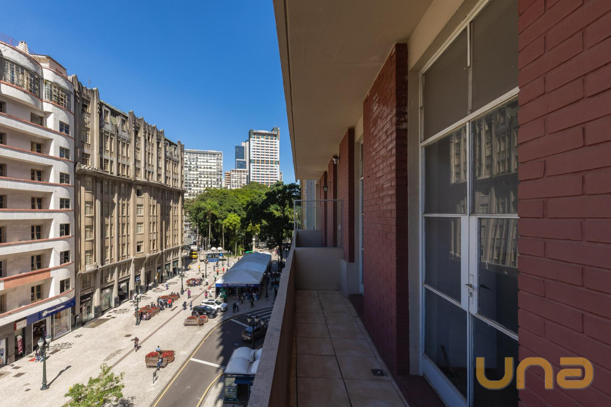 Duas das salas oferecem sacadas com vista para o Calçadão da XV, proporcionando um ambiente agradável e inspirador.