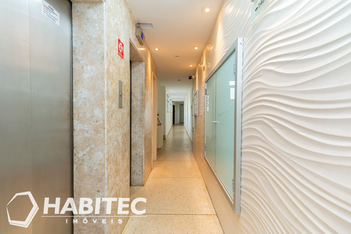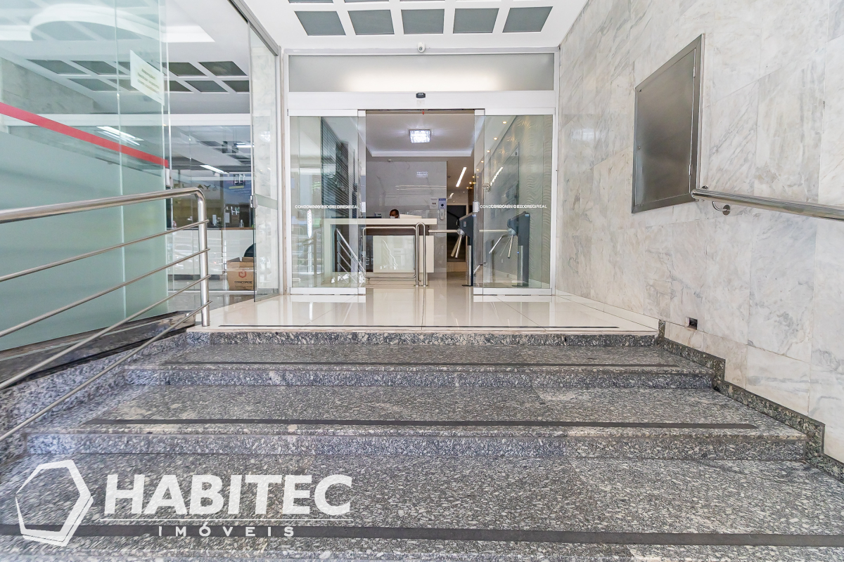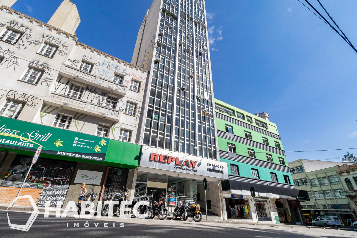 Edifício Credireal - Conjunto comercial, muito bem localizado, próximo Praça Tiradentes, calçadão da Rua XV, andar alto, 2 elevadores, hall finamente revitalizado, portaria 24 hrs, com acesso de reconhecimento facial, com 2 salas, banheiro com tampo e piso em granito, teto rebaixado, em gesso, luminárias,