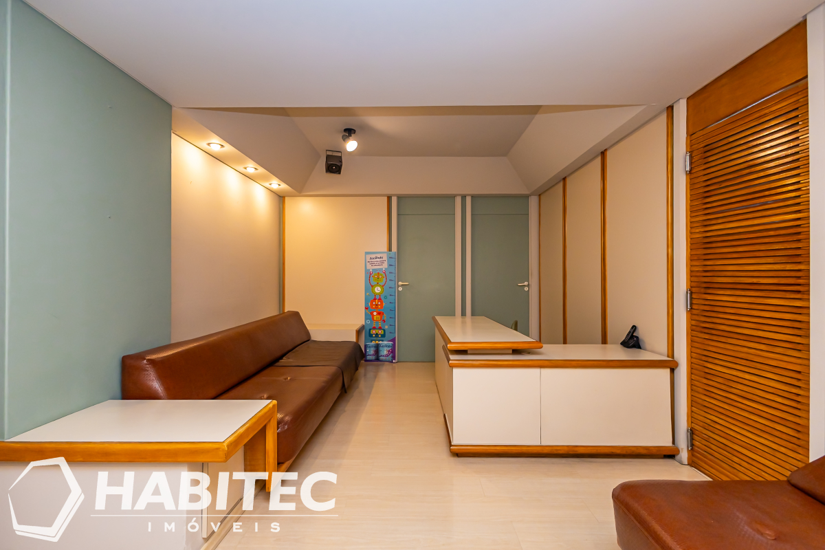O conjunto possui ampla sala de recepção com móveis sob medida, sofá e iluminação, mais 3 salas com móveis, separadas com divisórias, cozinha com armário, refrigerador e banheiro.