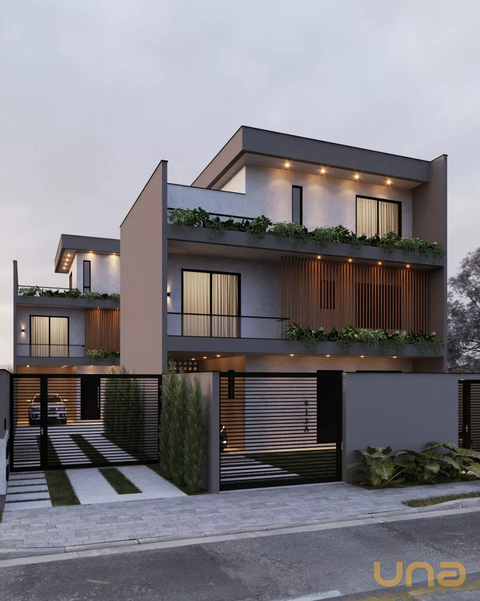 Com 147,59 m² distribuídos em sala de estar, lavabo, copa/cozinha, área de serviço, 3 quartos (sendo 1 suíte), banheiro social, amplo atico com banheiro e area externa + 26m2 de terraço + 13,10m2 de jardim.