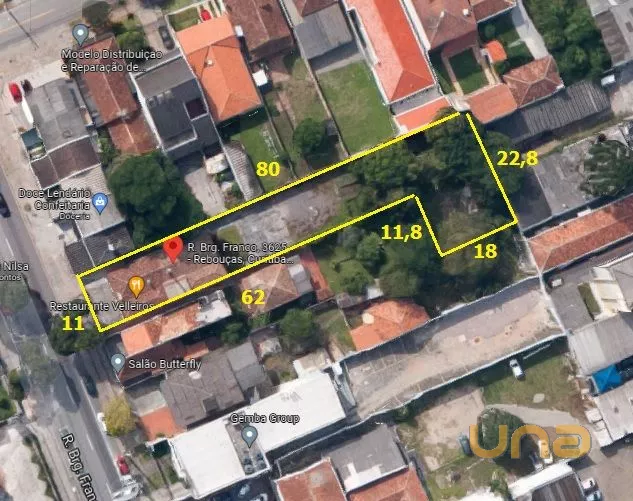 11m de frente para a Rua Brigadeiro Franco!!<br>80m de extensão da frente aos fundos pelo lado esquerdo;<br>62m pelo lado direito, abre à direita por 11,8m, e segue por mais 18m em direção aos fundos; linha de fundos com 22,80m.<br>Com edificação em alvenaria sem valor comercial. <br>Rua Brigadeiro Franco, em frente ao Clube Dom Pedro II, divisa dos bairros Agua Verde e Rebouças!!<br>Zoneamento ZUM-3 (Zona de uso misto), permite usos habitacionais e comerciais diversos!<br>Consulte-nos e agende sua visita!
