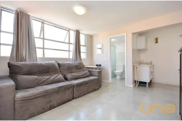 Kitnet contendo sala, quarto e cozinha conjugados; Cozinha com pia em granito e balcão com tampo granito; Piso cerâmico;